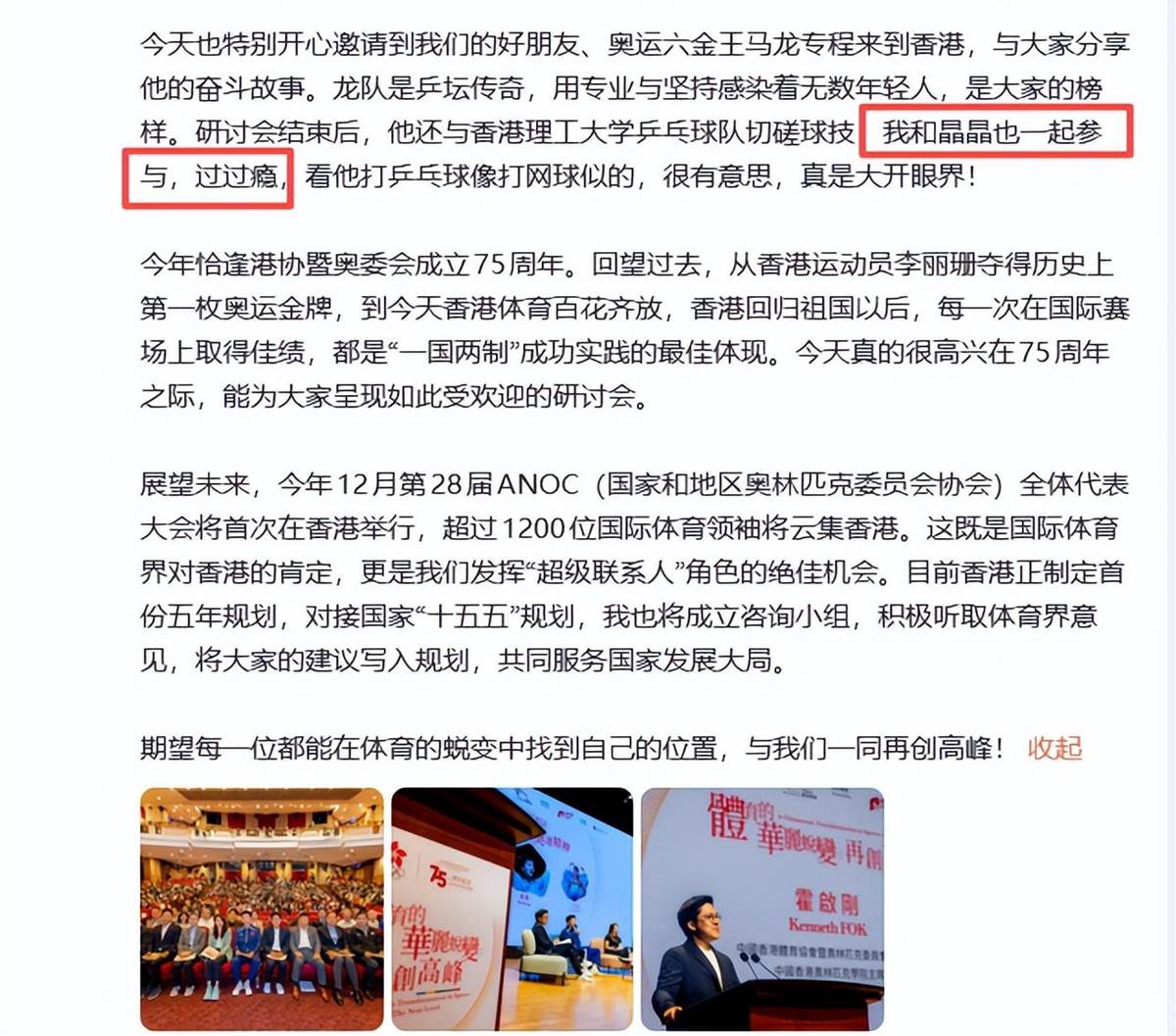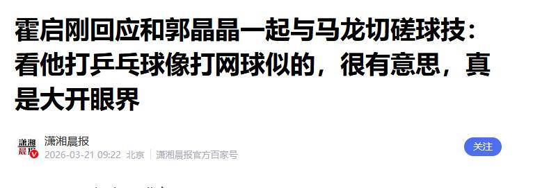 瀟湘晨報|霍啟剛回應和郭晶晶一起與馬龍切磋球技:看他打乒乓球像打網球似的,很有意思,真是大開眼界