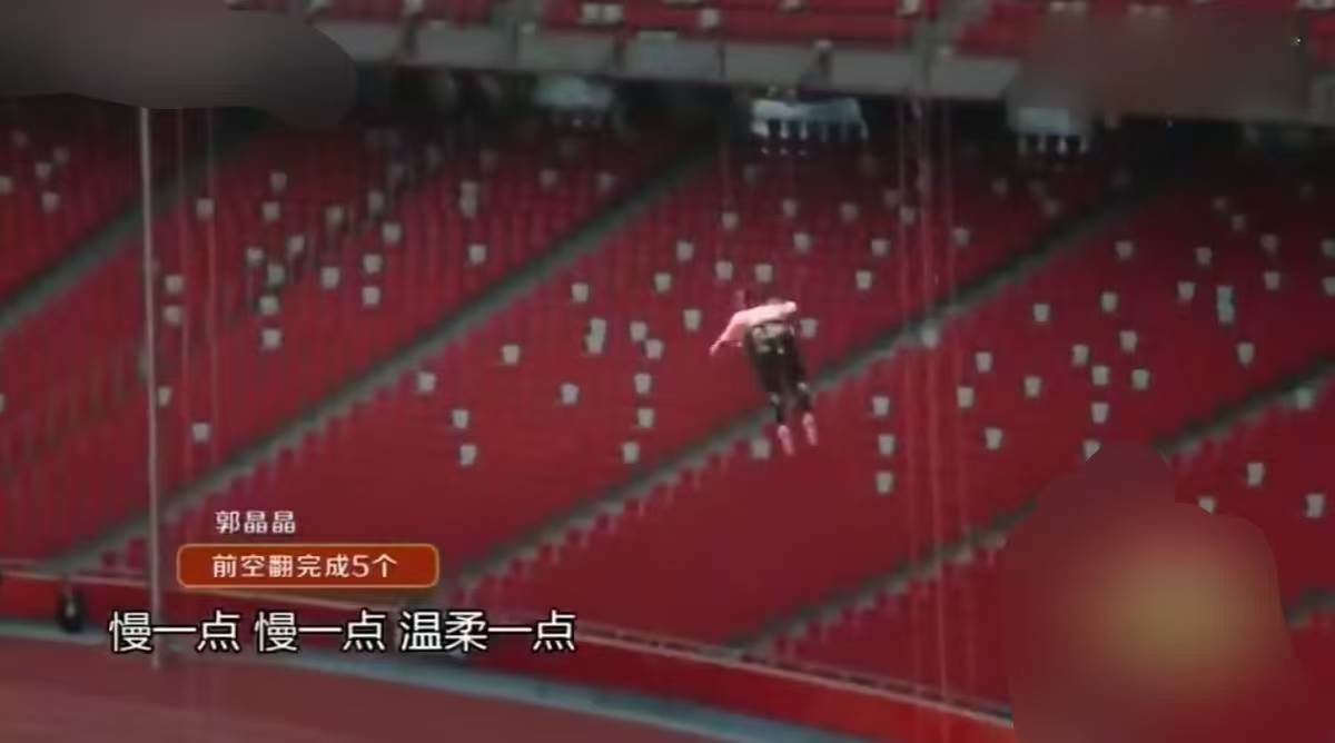 郭晶晶挑戰高空空翻時,霍啟剛在臺下全程捏著一把汗。