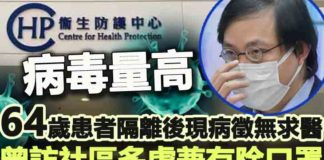 【病毒量高】64歲患者隔離後現病徵無求醫...