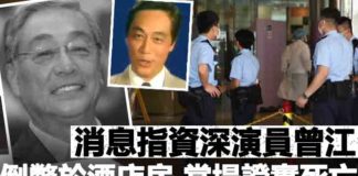 【消息指資深演員曾江倒斃於酒店房 當場證...