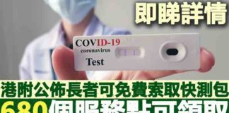 【即睇詳情】港附公佈長者可免費索取快測包...