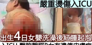 【嚴重燙傷】出生4日女嬰洗澡後紅腫起泡入...