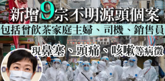 【現鼻塞、頭痛、咳嗽等病徵】新增9宗不明...