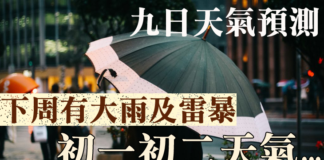 【九日天氣預測】下周有大雨及雷暴 初一初...