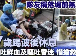 【隊友稱落場前無異樣】27歲踢波後休息 突口吐鮮血...
