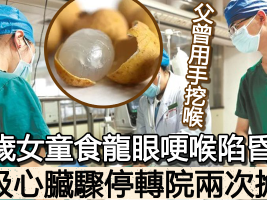 【父曾用手挖喉】2歲食龍眼哽喉陷昏迷 呼吸心臟驟停...