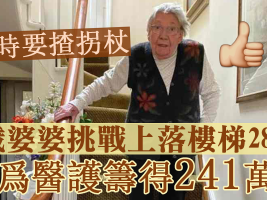 【90歲婆婆挑戰上落樓梯282次 爲醫護籌得241...