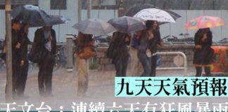 【九天天氣預報】天文台:連續六天有狂風暴...