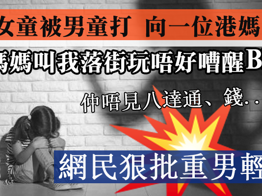 【網民狠批重男輕女】4歲女童被男童打 向一位港媽求...