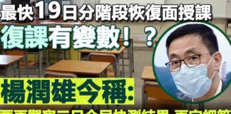 【下月19日起分階段復課】楊潤雄公佈恢復...
