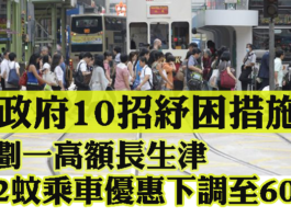 【政府10招紓困措施:劃一高額長生津 2蚊乘車優惠...