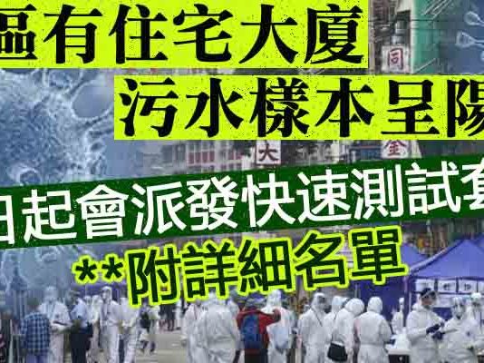 【附詳細名單】6區有住宅大廈污水樣本呈陽性:今日起...