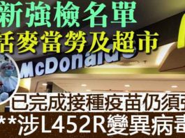 【涉L452R變異病毒株】最新強檢名單 包括麥當勞...