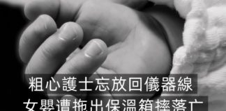 粗心護士忘放回儀器線 女嬰遭拖出保溫箱摔...