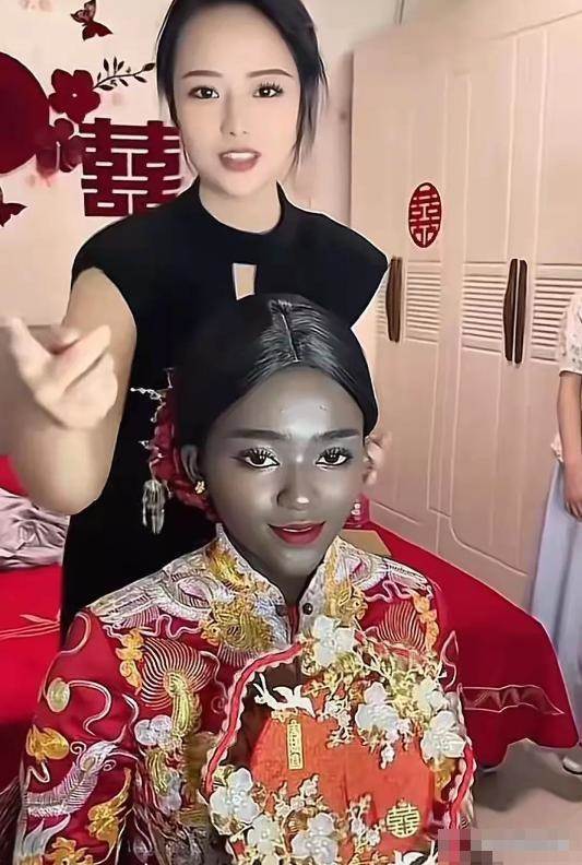 再仔細端詳一下,雖然膚色偏黑,但這新娘長得確實挺美的。