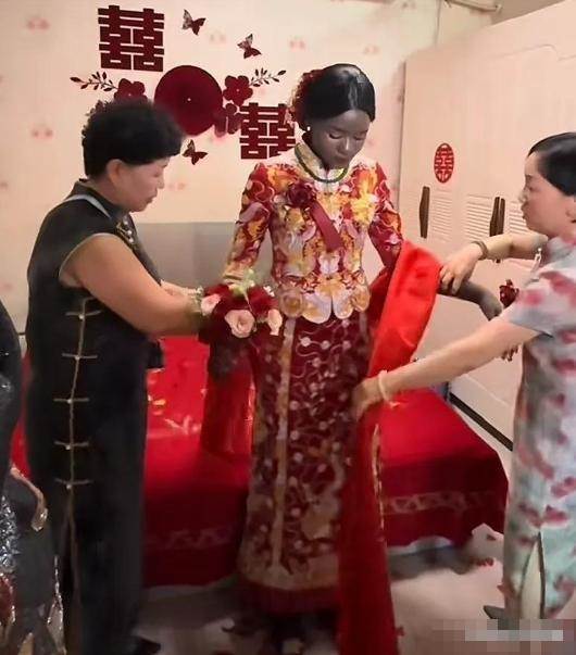 當新娘身著鑲嵌著紅色和金色元素的傳統婚禮服飾亮相時,村民們不禁有些「愣住了」。