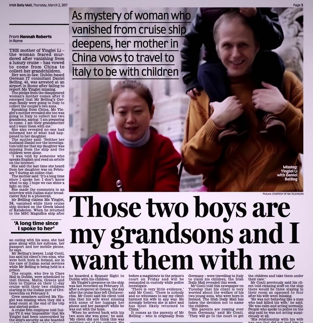 因此,羅馬警方斷定,貝林在說謊,李映蕾壓根兒至始至終都在船上,從未下船。