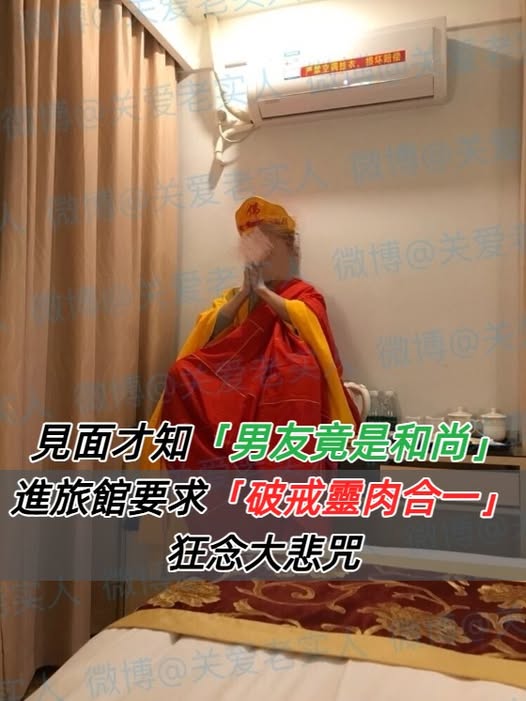 完事後,女網友才發現和尚男友從外地來到她所在的城市,居然身無分文、而且不管何時都穿著那身袈裟,「他說空空而來、空空而去,」接著更讓女網友崩潰的是,「我讓他走也不走,還跟我到公司,站在公司陽台上說是吸收日月精華?同事都在笑我!」
