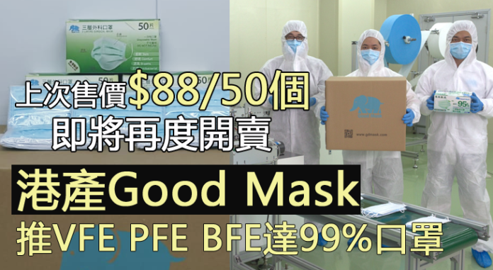 【上次售價$88/50個】Good Mask推VFE PFE BFE達99%口罩 即將開賣 http://mybblink.online/k/QmbMd