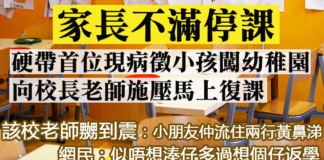 【家長不滿停課 硬帶首位現病徵小孩闖幼稚...