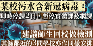 【建議師生回校做檢測】某校污水含新冠病毒...
