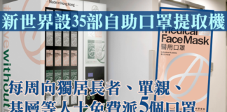 【新世界設35部自助口罩提取機 每周向獨...
