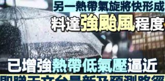 【另一熱帶氣旋形成 料達強颱風程度】熱帶...