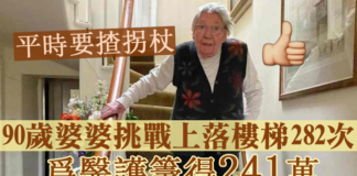 【90歲婆婆挑戰上落樓梯282次 爲醫護...