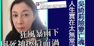 【狂風暴雨下與死神擦肩而過】吳綺莉險變亡...