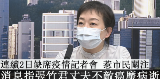 【張竹君首次缺席疫情記者會 惹網民擔心】...