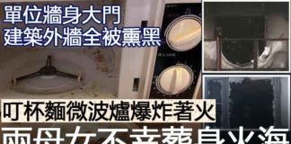 【單位牆身大門建築外牆被熏黑】叮杯麵微波...