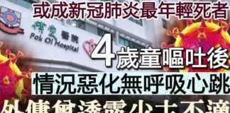 【或成新冠肺炎最年輕死者】4歲童嘔吐後情...