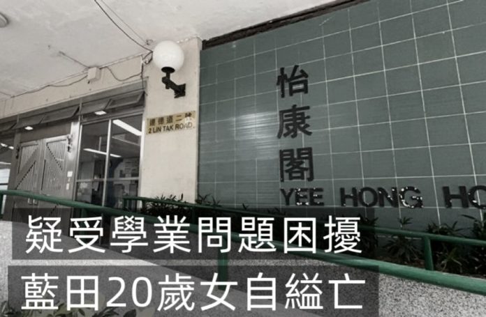 警方於現場檢獲遺書,死因有待驗屍後確定。據了解,死者為一名大學二年級學生,與父母及胞妹同住上址,近日疑受學業問題困擾。