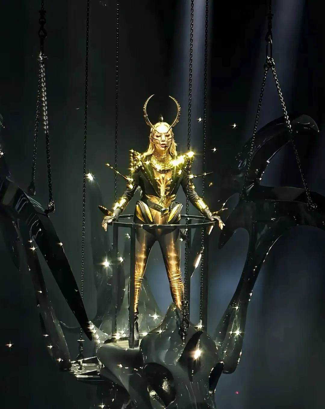 舞台上的燈光不斷變換,五彩斑斕的光芒映照在她的身上,也映照在觀眾的臉上。她的服裝造型更是堪稱「靚衫新戰衣」,從未來感十足的戰袍到高貴華麗的禮服,每一套都讓人眼前一亮。她仿佛是一個行走的時尚icon,用她的魅力詮釋著音樂與時尚的完美結合。舞台上的她,自信而從容,每一個動作都充滿了力量和美感,仿佛在用身體訴說著音樂的靈魂。